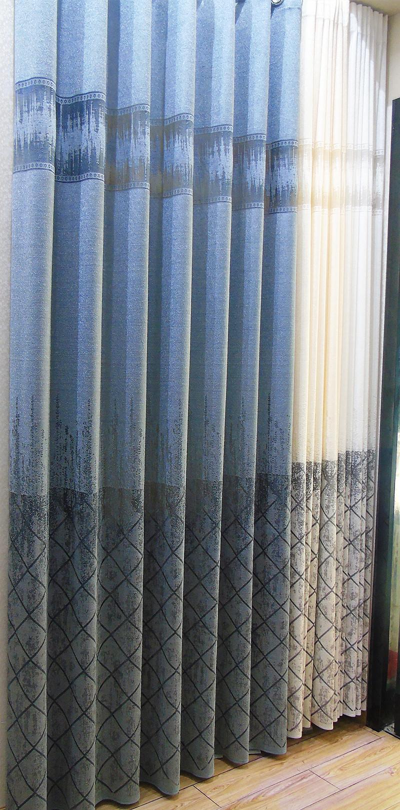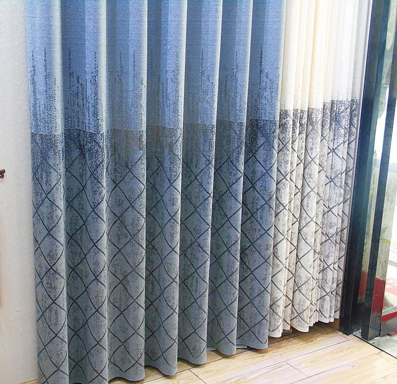 現(xiàn)代冰裂紋條紋印花客廳臥室強(qiáng)遮光窗簾成品布藝窗簾